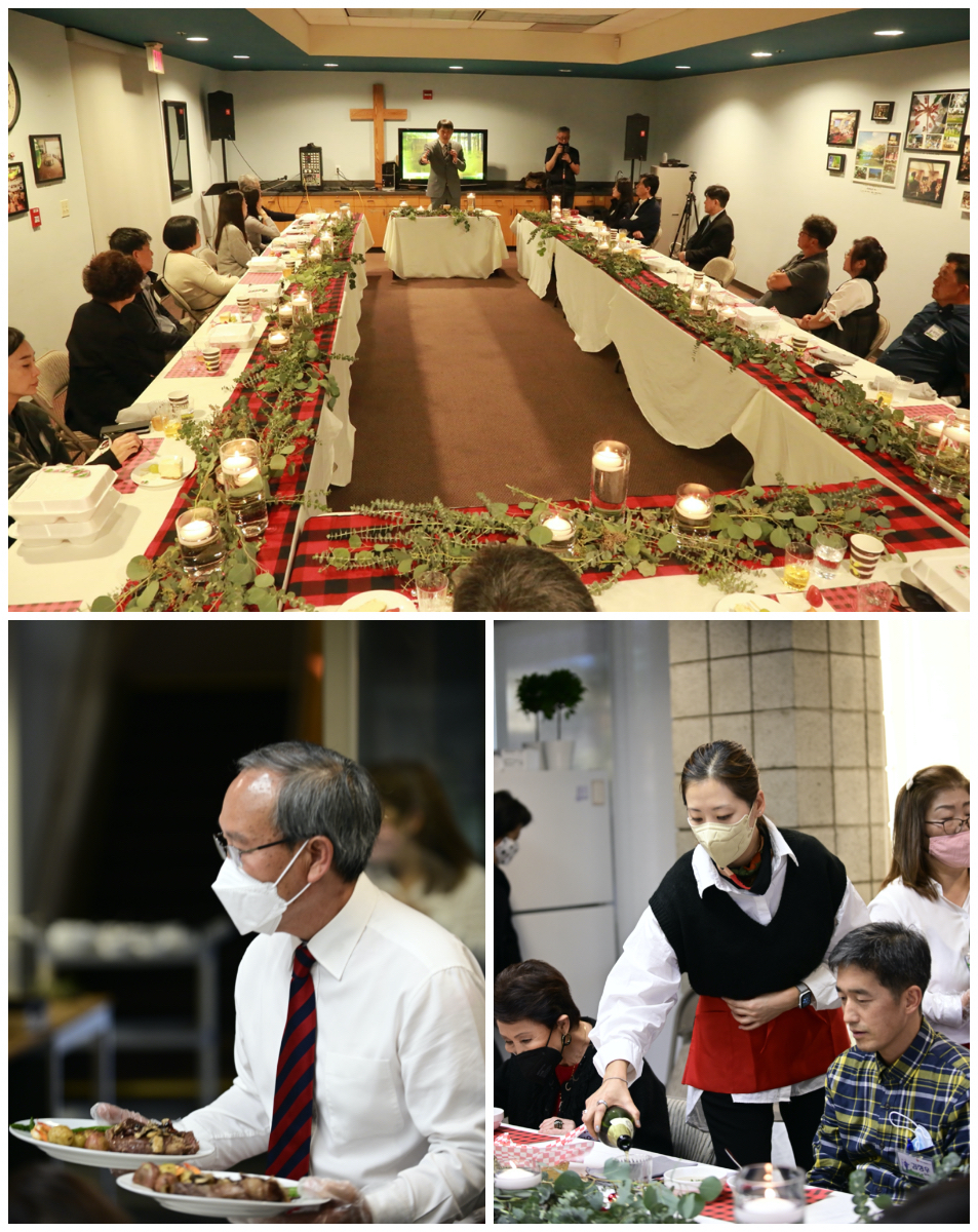 담임 목사님과 새가족국원들이 정성스럽게 준비한 음식을 서빙하며 새가족들을 환영했습니다.