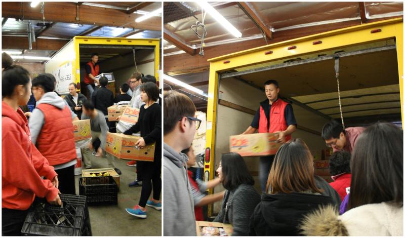 이제 음식들을 담은 박스들을 다시 트럭에 싣고 이웃들을 만나러 갑니다.