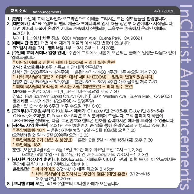주보 4월 11일 주보 Total 636건 1 페이지 주보 목록 10월 26일 주보 10월 19일 주보 10월 12일 주보 10월 5일 주보 9월 28일 주보 9월 21일 주보 9월 14일 주보 9월 7일 주보 8월 31일 주보 8월 24일 주보 열린1페이지 2페이지 3페이지 4페이지 5페이지 6페이지 7페이지 8페이지 9페이지 10페이지 다음 맨끝