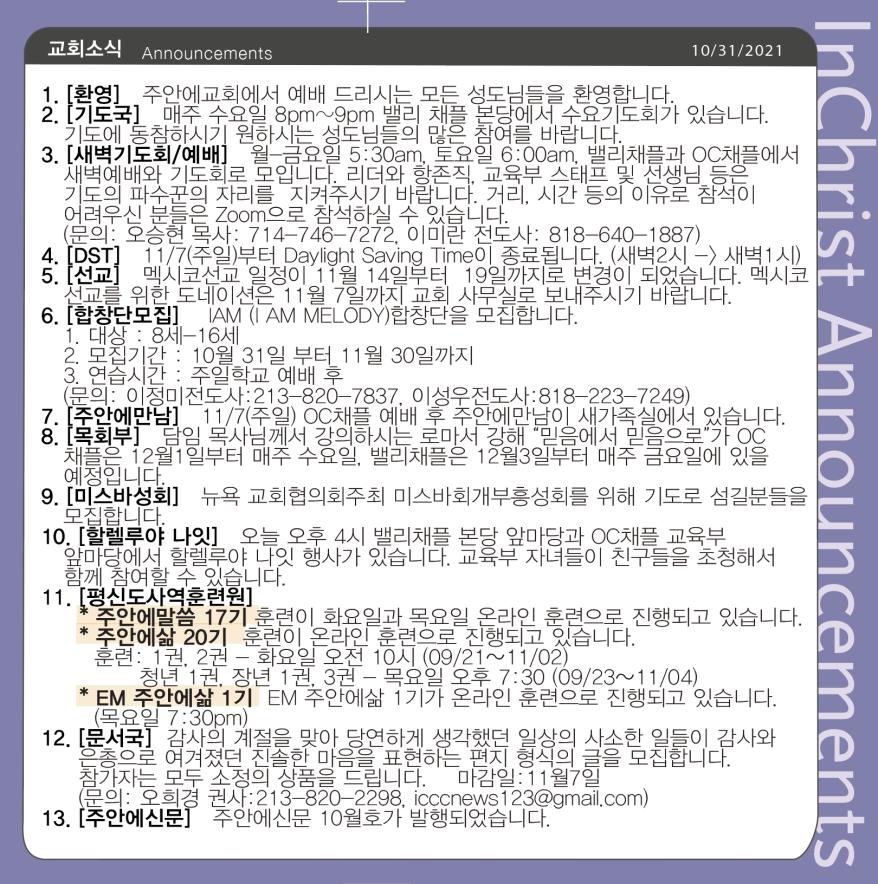 주보 10월 31일 주보 Total 636건 1 페이지 주보 목록 10월 26일 주보 10월 19일 주보 10월 12일 주보 10월 5일 주보 9월 28일 주보 9월 21일 주보 9월 14일 주보 9월 7일 주보 8월 31일 주보 8월 24일 주보 열린1페이지 2페이지 3페이지 4페이지 5페이지 6페이지 7페이지 8페이지 9페이지 10페이지 다음 맨끝