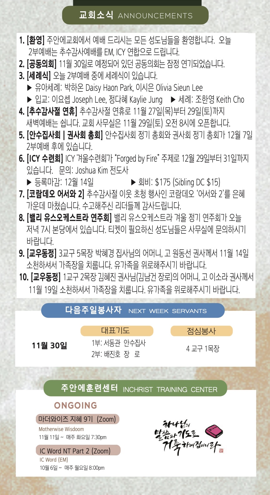 주보 11월 23일 주보 Total 643건 1 페이지 주보 목록 12월 14일 주보 12월 7일 주보 11월 30일 주보 11월 23일 주보 11월 16일 주보 11월 9일 주보 11월 2일 주보 10월 26일 주보 10월 19일 주보 10월 12일 주보 열린1페이지 2페이지 3페이지 4페이지 5페이지 6페이지 7페이지 8페이지 9페이지 10페이지 다음 맨끝